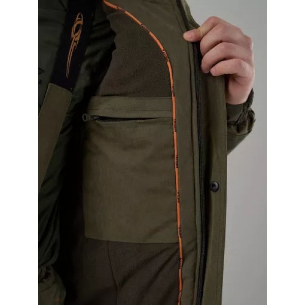- 4 прорезных кармана на влагозащитных молниях, 2 боковых кармана «книжка» на рукавах, на кнопке