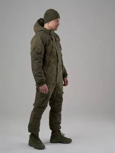 износостойкостью. Это будет очень кстати, когда необходимо пробираться через кусты или бурелом. Благодаря качественной мембране, костюм обеспечит надежную защиту от осадков и ветра.