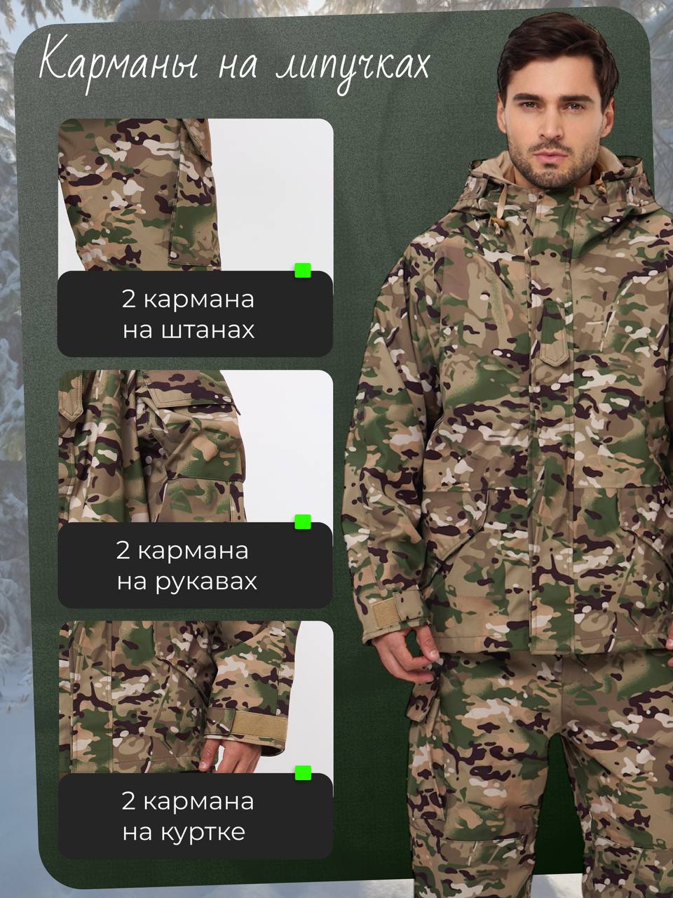 Костюм из 3-хслойной мембраны держит даже самые сильные ветра и ливни, а отстёгивающийся флис регулирует тепло, что будет полезено для тех, чья жизнь связана с охотой, рыбалкой и прочим активным времяпрепровождением на природе, несмотря на капризы погоды.